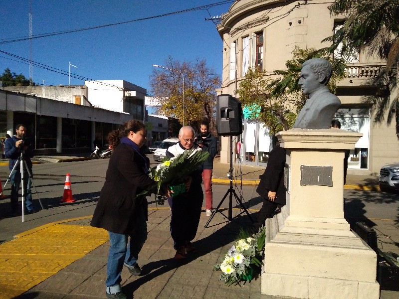 En el Día del Periodista, se realizó a los pies del busto de Mariano Moreno en la intersección de 25 y 16, el homenaje al creador de La Gazeta de Buenos Aires de 1810.