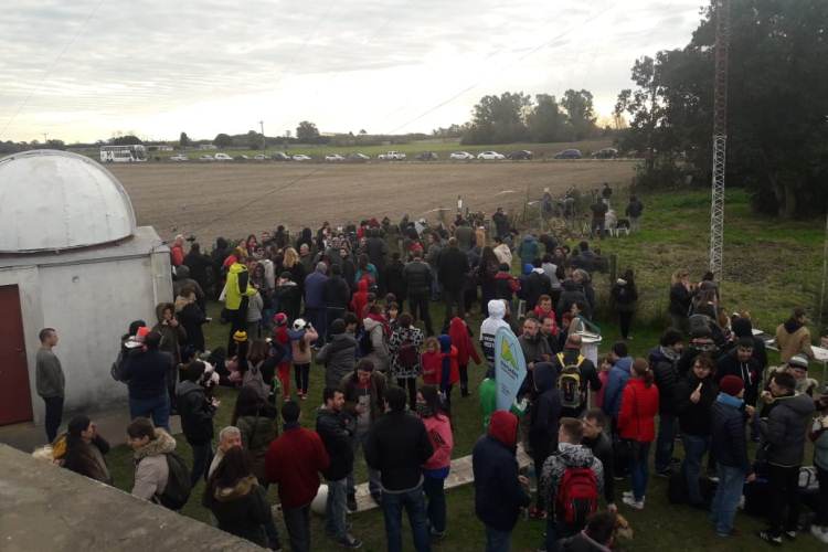 Por TeCleArte – La tarde nublada se despejó durante los pocos minutos que duró la totalidad del eclipse. Más de 400 personas se hicieron presentes en el Observatorio para ver y aplaudir el fenómeno que duró 1,43 minutos en su apogeo.