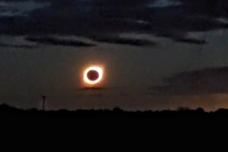 Sin embargo, el fenómeno natural daría revancha y minutos antes de la totalidad del eclipse, las nubes desocultaron a la luna que en ese momento tapaba por completo el sol sobre el oeste noroeste de la Mercedes.