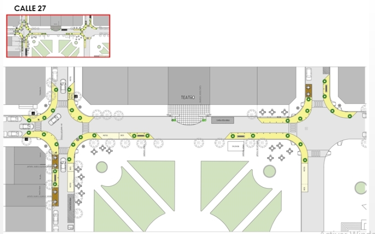 Introducción de parklets en puntos estratégicos para fomentar la estancia de los peatones y ampliar las zonas de gastronomía. Reforzar el eje Plaza San Martin – Teatro Municipal a través de la ampliación del acceso al Foyer del Teatro. Reforestación del área con especies de pequeño y mediano porte e incorporación de macizos verdes.