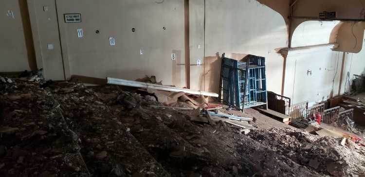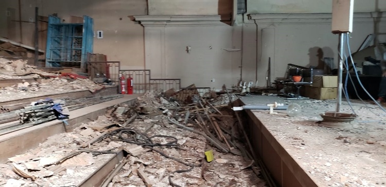 La obra se está llevando a cabo desde hace unos días. Se inició con el desarmado del techo, el retiro de butacas, y el desmantelamiento de mampostería.
