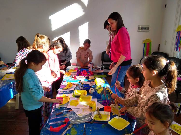 El último sábado la sede de Avenida 29 de la Cámara Económica fue centro de actividades para la familia. Hubo manualidades, juegos y yoga para los más pequeños y un taller de estampación en tela.