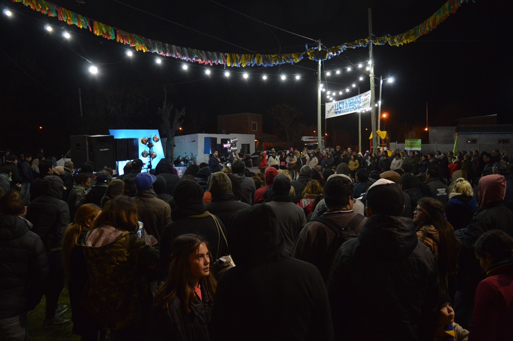 En barrio Marchetti a pesar del frío una gran cantidad de vecinos se hicieron presentes para acompañar la candidatura del intendente Ustarroz a la reelección.