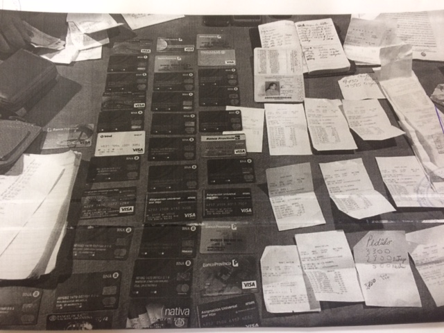 En el lugar se procedió al secuestro de una gran cantidad de tarjetas de débito de distintos bancos correspondientes a beneficiarios de planes sociales, cuadernos con anotaciones, una importante suma de dinero en efectivo, constancias de extracción de cajero automático, entre otras.