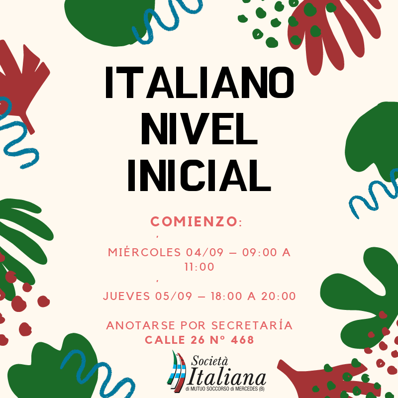 En la primera semana del mes de septiembre, la Sociedad Italiana de Mercedes iniciará un nuevo curso de italiano de nivel inicial. Los interesados pueden anotarse en la sede de calle 26, entre 19 y 21.
