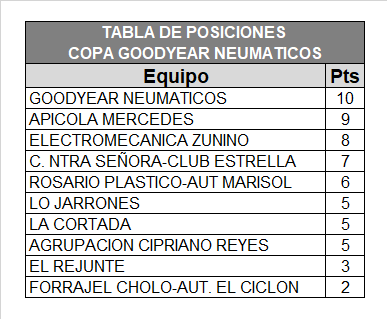 En lo acontecido en los más grandes del sindicato, hay que destacar que Goodyear sigue por el buen camino. Sumó una nueva victoria, y tacho de la lista a otro plantel. Esta vez fue a la Agrupación Cipriano Reyes, y el marcador final mostró un dos a uno decisivo para el puntero del campeonato.