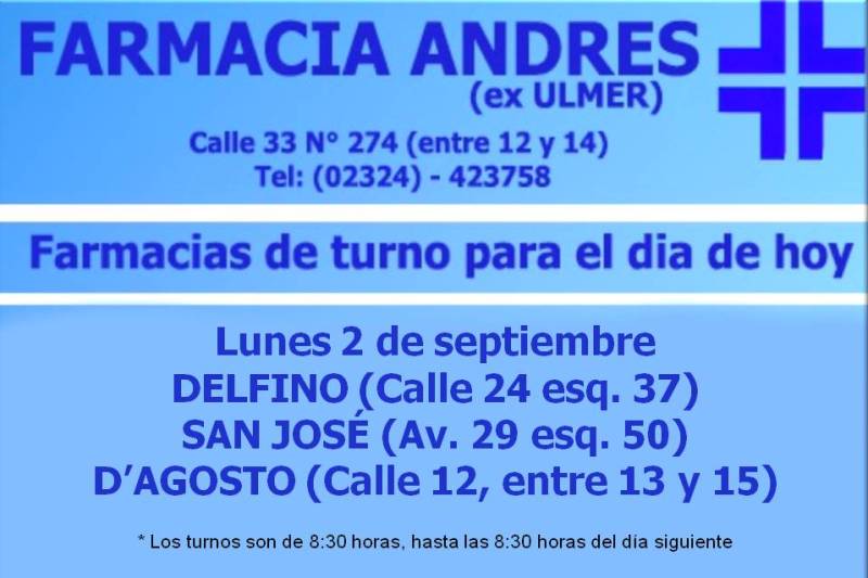 Farmacias de turno día lunes 2 de septiembre 2 septiembre, 20192 septiembre, 2019Comparte esto: Haz clic para compartir en WhatsApp (Se abre en una ventana nueva) WhatsApp Haz clic para compartir en Telegram (Se abre en una ventana nueva) Telegram Haz clic para compartir en X (Se abre en una ventana nueva) X Haz clic para compartir en Facebook (Se abre en una ventana nueva) Facebook TE PUEDE INTERESARCOMENTARIOS Comentarios