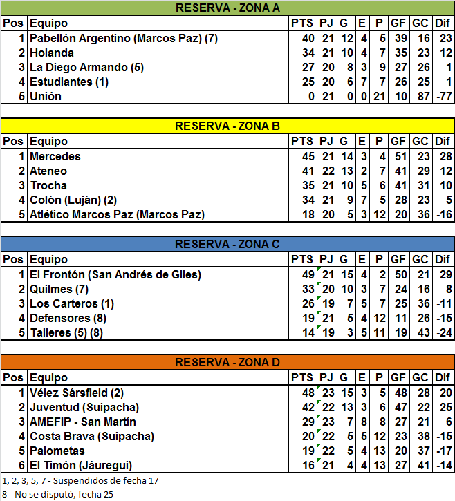 El jueves por la noche se jugó uno de los partidos de Reserva que se adeudan de la fecha 17. La Carbonilla derrotó 2 a 0 a Palometas con goles de Maximiliano Castro Ballesteros y Martín Aguirre. Con este triunfo, Trocha subió al tercer puesto y sigue con chances de alcanzar a Ateneo y Club Mercedes, ya que las matemáticas se lo permiten. Con la derrota, Palometas quedó eliminado, ya que no podrá alcanzar a AMEFIP Barrio San Martín ni a Costa Brava, que se aseguraron la clasificación.