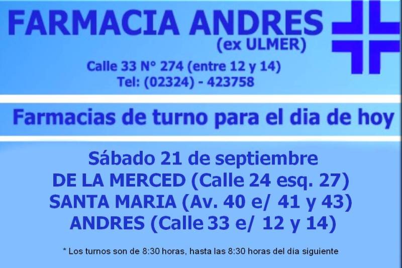 Farmacias de turno día sábado 21 de septiembre 21 septiembre, 201921 septiembre, 2019Comparte esto: Haz clic para compartir en WhatsApp (Se abre en una ventana nueva) WhatsApp Haz clic para compartir en Telegram (Se abre en una ventana nueva) Telegram Haz clic para compartir en X (Se abre en una ventana nueva) X Haz clic para compartir en Facebook (Se abre en una ventana nueva) Facebook TE PUEDE INTERESARCOMENTARIOS Comentarios