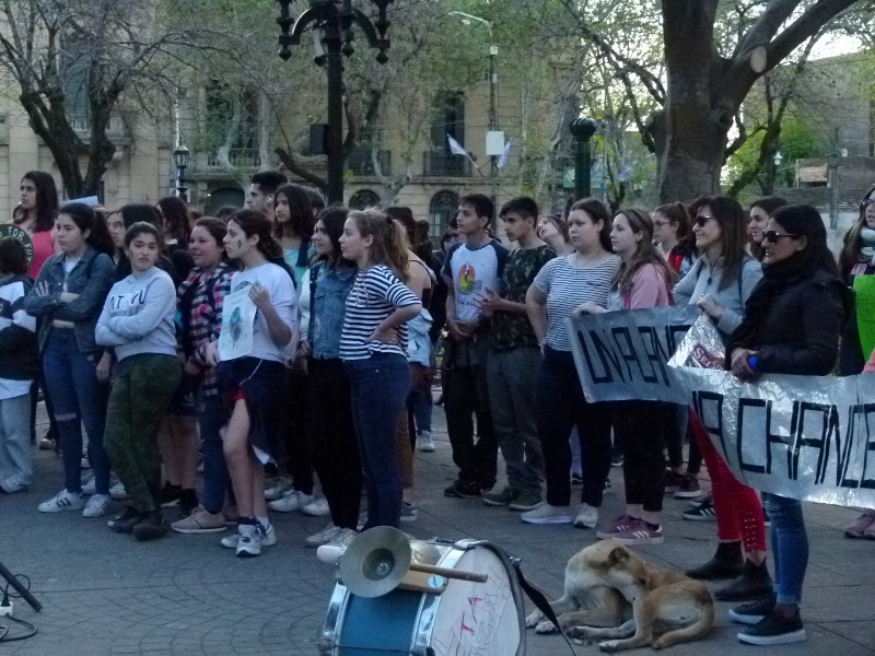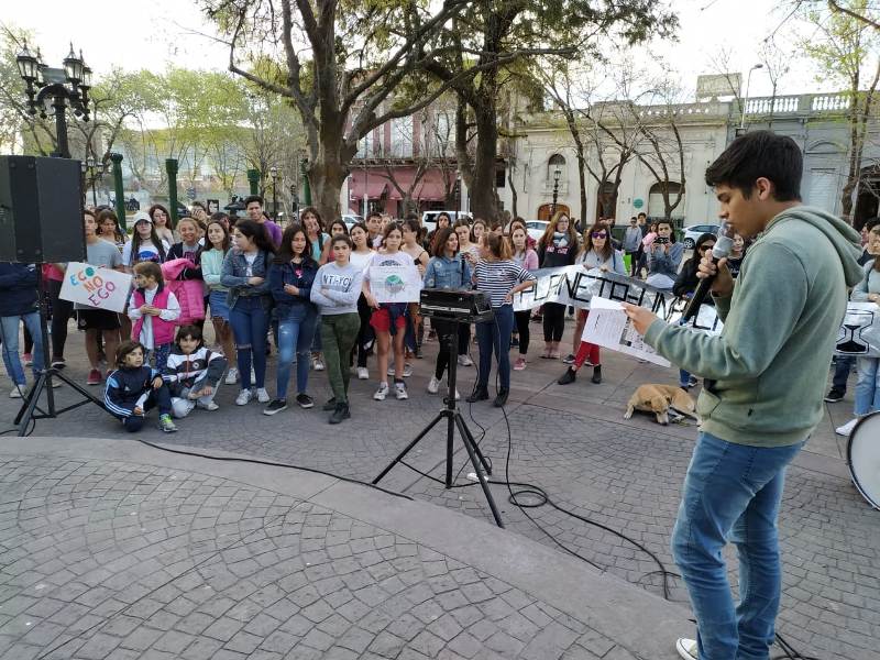 La idea fue surgiendo de un par de docentes, en el contexto del aula fueron hablando del tema con sus estudiantes y ante la convocatoria internacional, comenzaron a sumarse chicos y grandes a la propuesta de reunirse a la hora 17 en la plaza principal de la ciudad con el fin de movilizarse y concientizar a la comunidad sobre la problemática ambiental.