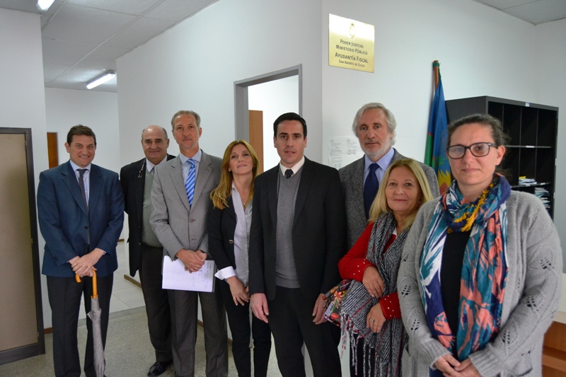 Junto al fiscal general del Ministerio Público Fiscal Departamental Mercedes, Dr. Pablo Merola, la Coordinadora Departamental del Centro de Asistencia a la Víctima, lic. Alicia Petrolatti, trabajadores del Ministerio Público; el Intendente Municipal, Marcelo Alejandro Skansi y referentes del ámbito político y judicial zonal, el Procurador dejó oficialmente en funciones la flamante dependencia.