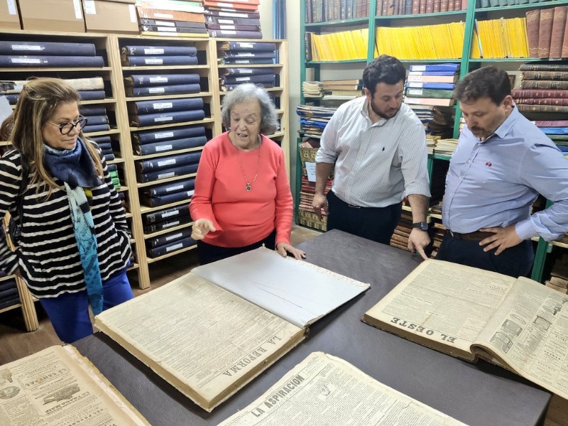 Más tarde, dialogaron con el Arzobispo Jorge Eduardo Scheinig sobre la crisis actual y visitaron la Biblioteca Sarmiento fundada en el año 1887, donde examinaron material histórico de la ciudad con la explicación de la Lic. Leonor Ocampo. La Dra. Camaño recibió el pedido de la institución para que la Biblioteca sea declarada patrimonio histórico Nacional.