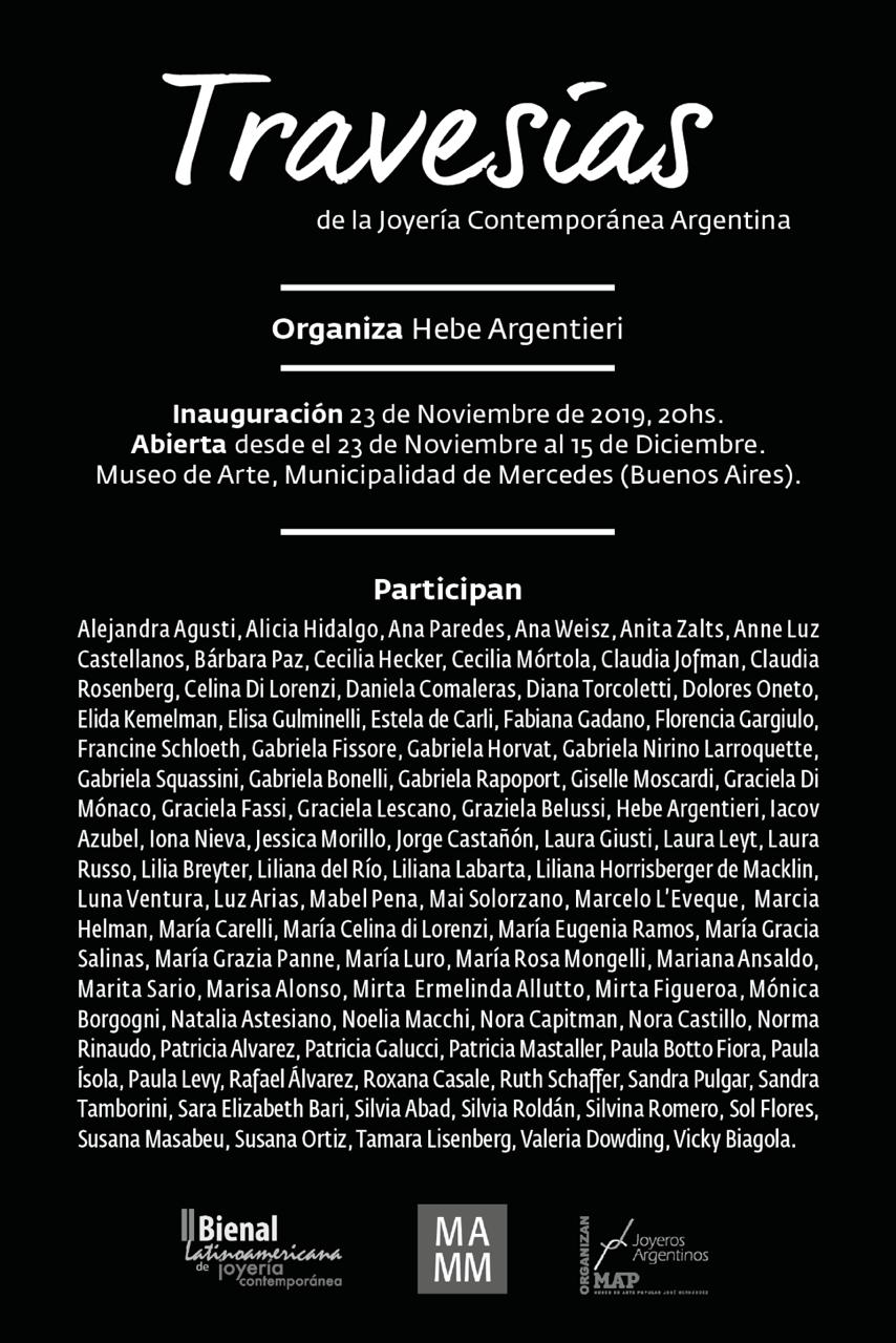 A partir del sábado 23 de noviembre, 20 horas, abrirá las puertas la muestra que reúne las Travesías de la Joyería Contemporánea Argentina. En el Museo de Arte “Municipalidad de Mercedes” (MAMM) la exhibición traza una línea de tiempo representativa de la historia de la joyería argentina.