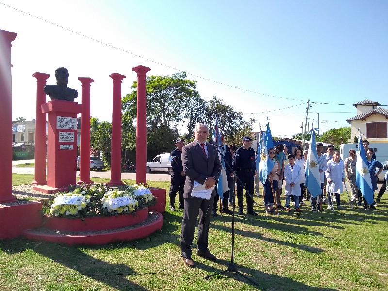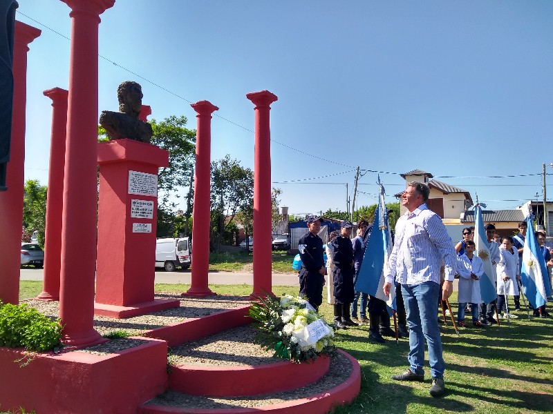 En el monumento que recuerda a quien lideró la batalla de 1845 se dieron citas las autoridades comunales y banderas de escuelas locales. Las palabras alusivas estuvieron a cargo del Dr. Ignacio Gallo en nombre del Instituto Juan Manuel de Rosas y del Intendente Ustarroz.