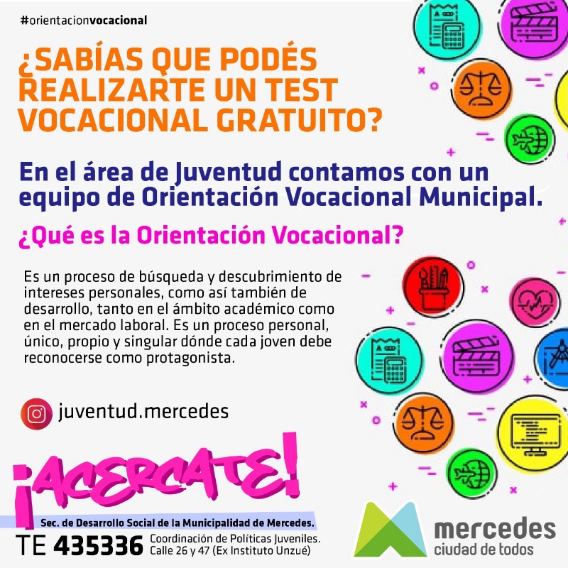 Asimismo, destacan que “el test vocacional es una herramienta esencial en el proceso de búsqueda de una carrera o empleo. Los mismos se realizan por un equipo de profesionales que efectúa la devolución de manera personalizada”.