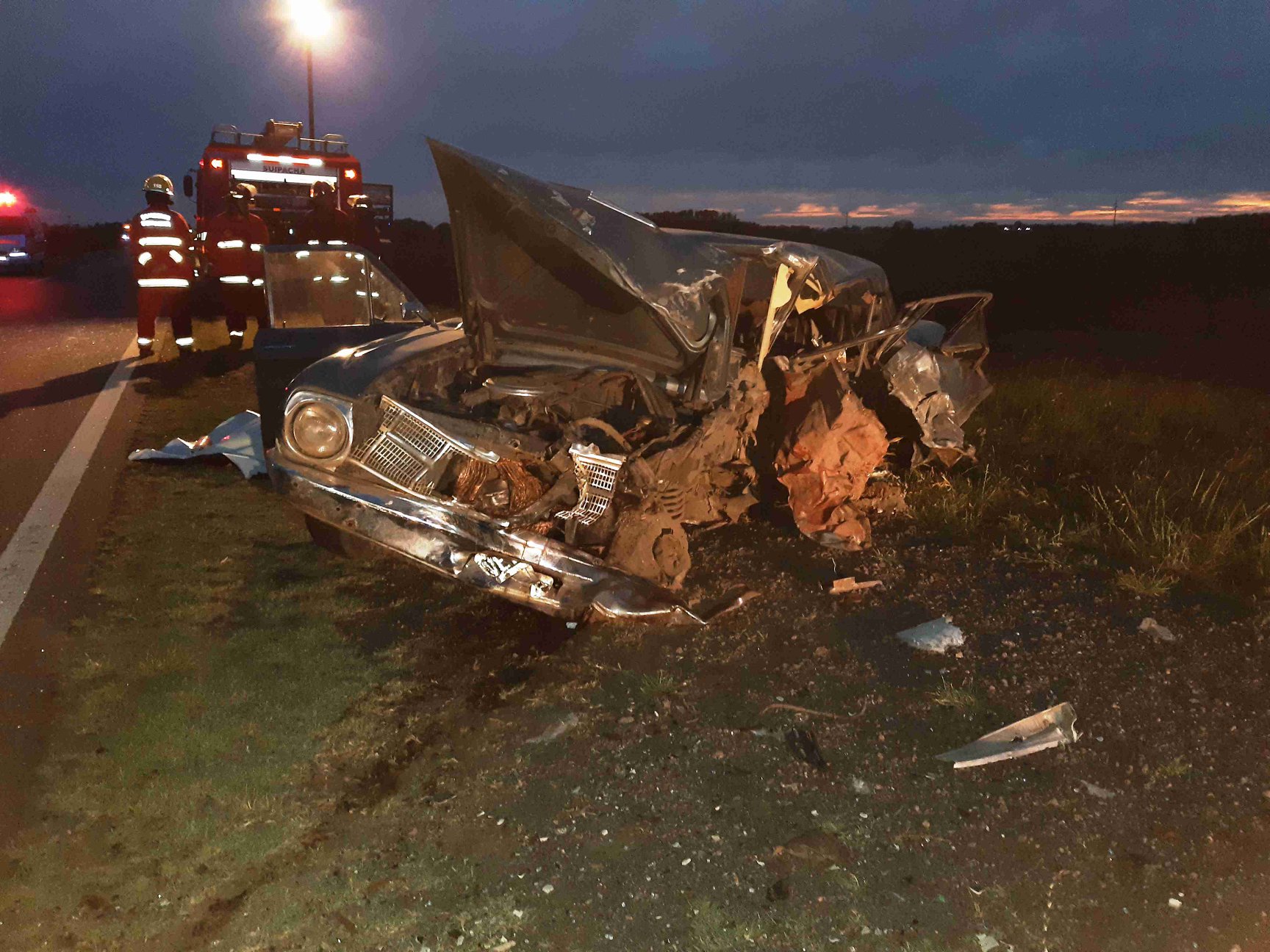 Desde Suipacha, Oscar Lasala informó que “El automóvil Ford Falcón circulaba en sentido Suipacha-Mercedes, y por causas que se desconocen invade la mano contraria impactando violentamente contra la parte delantera izquierda del camión Mercedes Benz que circulaba sin carga hacia Suipacha; luego del impacto entre ambos, el automóvil queda sobre la banquina en sentido opuesto al que circulaba , en tanto el camión, con su tren delantero izquierdo dañado atraviesa la mano contraria , y finaliza en forma de tijera en la zona de préstamo de la mano de circulación Suipacha-Mercedes a pocos metros del alambrado” comentó.