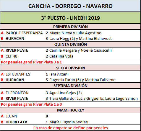 En cuanto a la lucha por el tercer puesto, CEF 40 perdió en Quinta División por penales ante River Plate de San Antonio de Areco luego de empatar 2 a 2. Los goles mercedinos fueron de Catalina Vola. En Sexta, Estudiantes fue goleado por 5 a 1 ante Huracán de San Antonio de Areco. El único gol pincha lo hizo Iara Arzani.