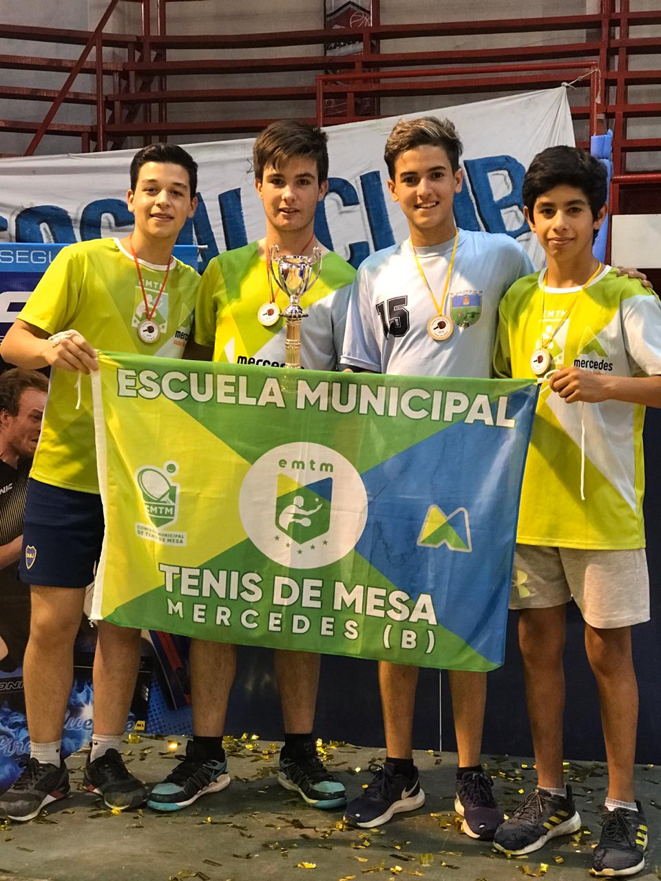 El domingo 24 la Escuela Municipal de tenis de mesa participó del quinto y último torneo del año, el Regional de equipos en la ciudad de Zárate. Fue con más de 150 participantes que se conformaron 5 equipos en las distintas categorías como Primera, Segunda y Séptima. Lo integraron 23 jugadores, fueron conformados en Primera por Félix Russo, Nicolás Altieri, Christian Cerverizzo, Hernán De Andrea y Luciano Bozzuto. En Segunda: Mercedes B lo integraron Alejandro Russo, Esteban Delvechio, León Florida y Renzo Brandoni. El equipo Mercedes C lo conformaron Iván Delvechio, Federico Laresca, Dylan Ramírez y Juan Aizpurua. En Séptima también hubo 2 elencos, Mercedes D con Carlos Roig, Jeremías Fleytas, Jorge Montaldo, Francisco y Esteban Fink y Mercedes E tuvo a Francisco Bigongiari, Daniel Corbella, Joaquín Revora, Natalia Contardi, Matías Salvador.