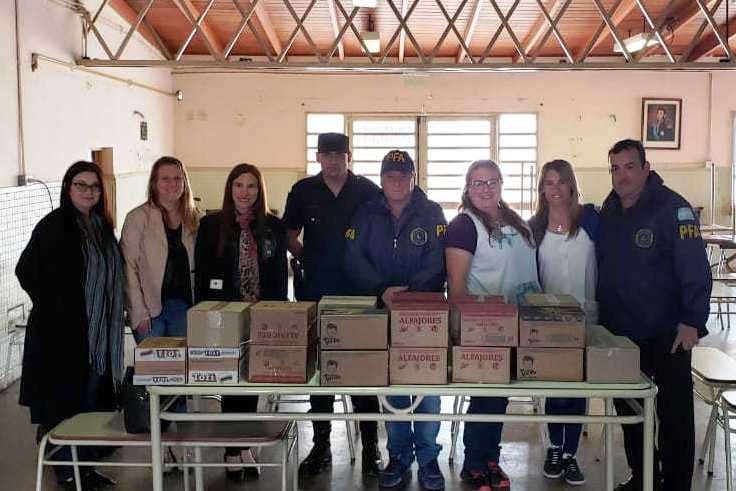 La Jefatura de la Delegación Mercedes de P.F.A. y personal a su cargo, llevaron a cabo una nueva donación la que consistió de diversos artículos comestibles no perecederos, como