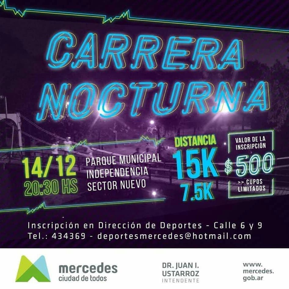 La consulta al teléfono 434369 más mail deportesmercedes@hotmail.com. Organiza la Dirección de Deportes de la Municipalidad de Mercedes para una carrera que promete premiación.