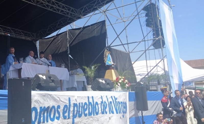 Monseñor Scheinig agradeció la presencia de Macri y Fernández e invitó a los presentes a vivar a la Virgen, en el día que comienza el Año Mariano Nacional por los 400 años de la aparición de una imagen de la Virgen en Catamarca.