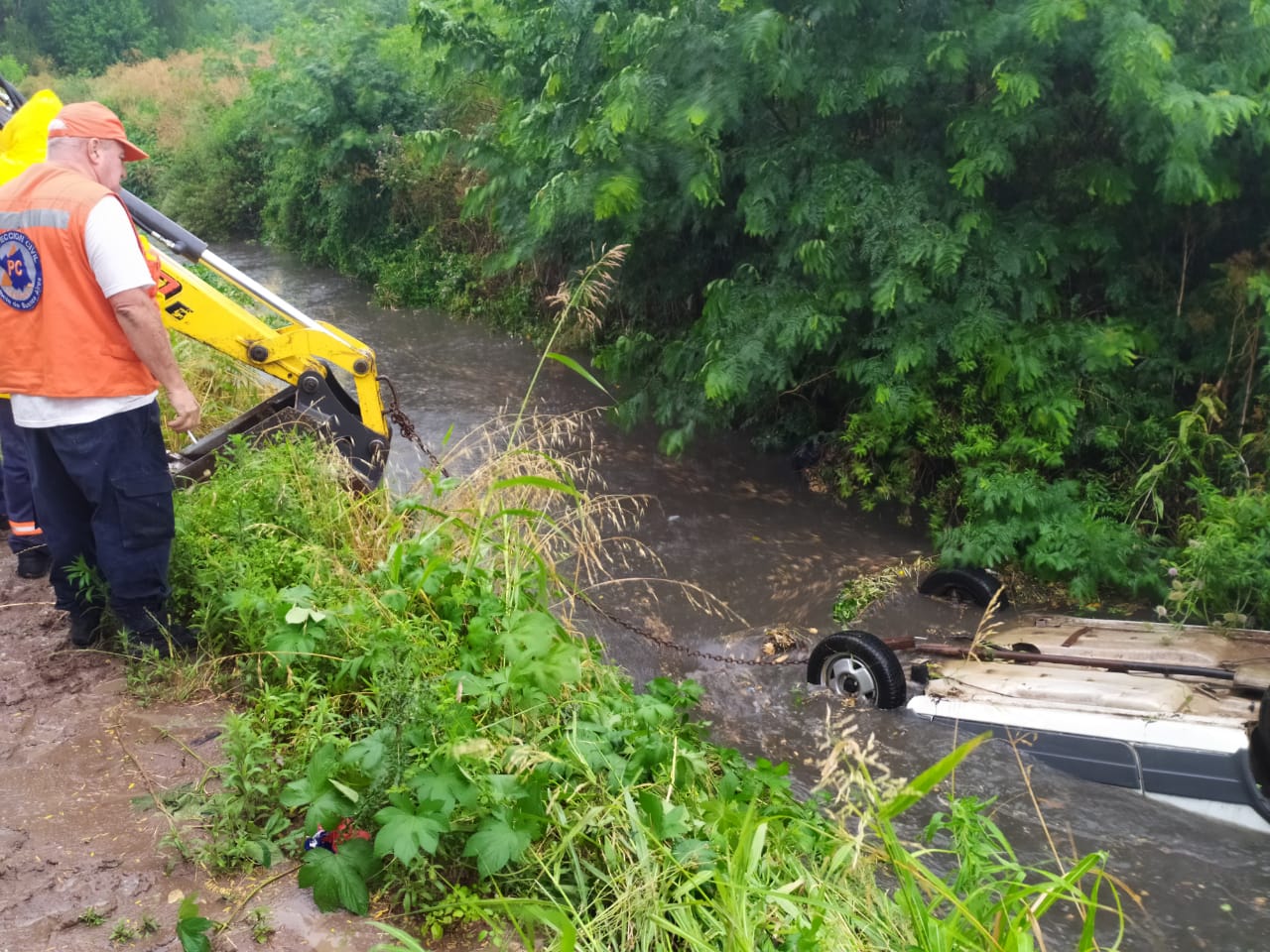Personal municipal y de Protección Civil rescataron el vehículo. No hubo que lamentar heridas de gravedad.
