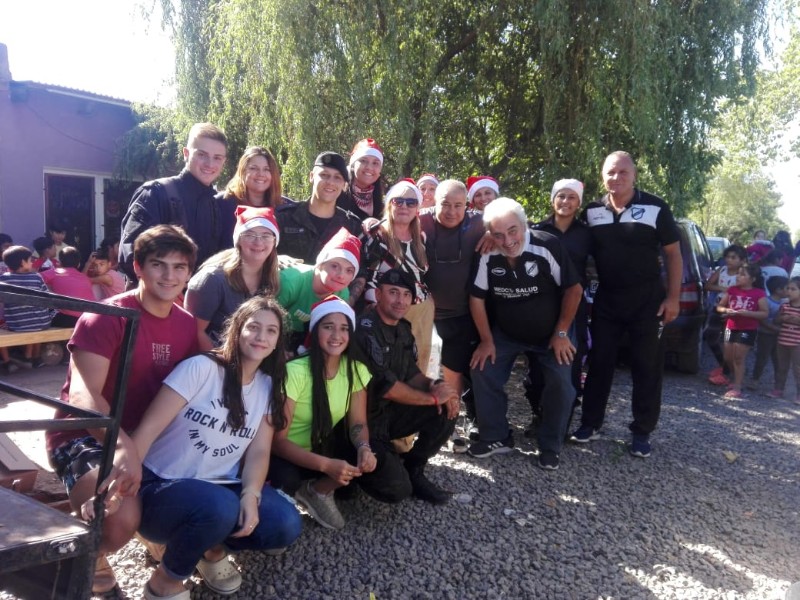 Anticipando la Navidad y con Papá Noel como ayudante, entregaron alimentos, leche, azúcar, chocolate, ropa para los niños, golosinas y cada uno de los niños recibió un pan dulce para llevar a sus casas y compartir en las fiestas con sus familias.