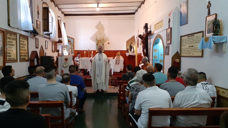 Mons. Jorge Eduardo Scheinig, celebró la Misa de Nochebuena en la Unidad Penitenciaria N° 5 de Mercedes, acompañado por su capellán, Pbro. Norberto Chirigliano y el diácono Mario Segura.