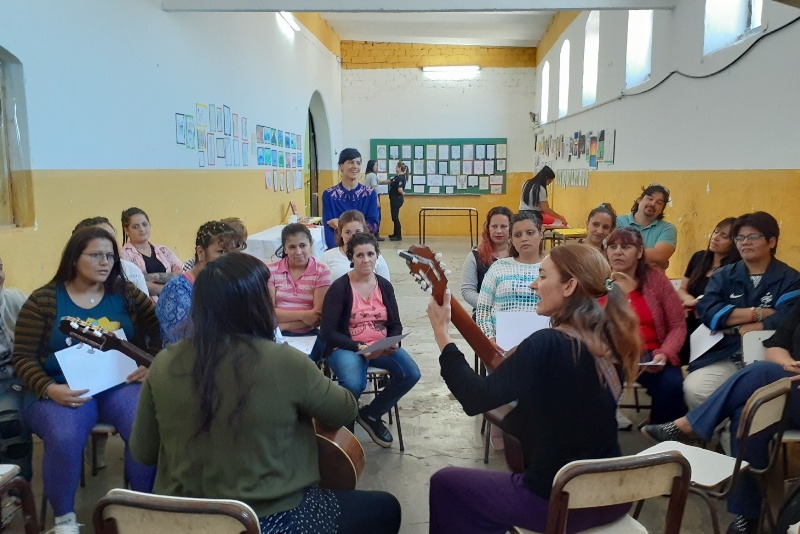 Para concluir el grupo La Raíz, compuesto por Marilina Erramuspe y Mariel Solari, hicieron el cierre musical, interpretando varios temas, del ritmo latinoamericana, generando un espacio intimista con las internas.