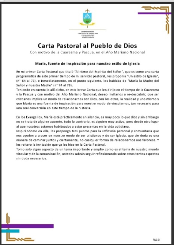 Compartimos Carta Pastoral para el tiempo de la Cuaresma y Pascua en el Año Mariano Nacional de Mons. Jorge Eduardo Scheinig, Arzobispo de Mercedes Luján. Para ver texto completo click aquí