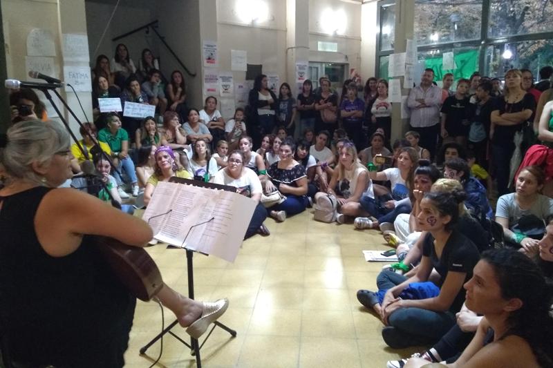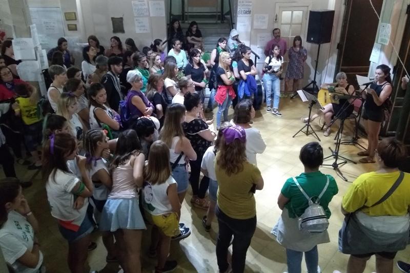 Reunidas en el teatro municipal, primero leyeron el documento conjunto con peticiones para el ámbito nacional y para la ciudad. Luego, Amarilis Díaz cantó tocando la guitarra un par de temas que fueron coreados con los presentes, y Silvia Di Césare relató dos breve historias (Ver Video). Las adhesiones de grupos e instituciones locales se explicitaron y se evidenciaron con la radio abierta en la cual tomaron la palabra mujeres participantes de la Asamblea de Mujeres Mercedinas.