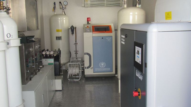 ●Módulo gases medicinales: Posee un contenedor de oxígeno que permite tomar el aire del ambiente y generar los gases medicinales necesarios para la atención médico/quirúrgica. El abastecimiento de estos gases se realiza a través de un sistema de distribución conectado a las unidades Médica y de Internación.
