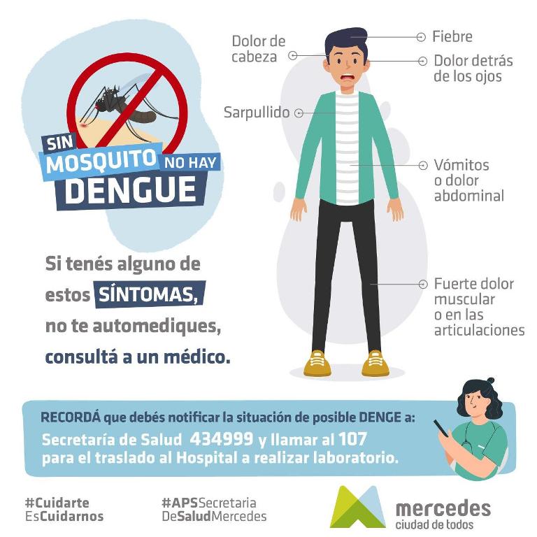 “Ante la presencia de cualquier síntoma sospechoso como fiebre, dolores de cabeza, detrás de los ojos y en las articulaciones” la cartera de salud recomienda comunicarse al 107 o consultar con el sistema de salud.