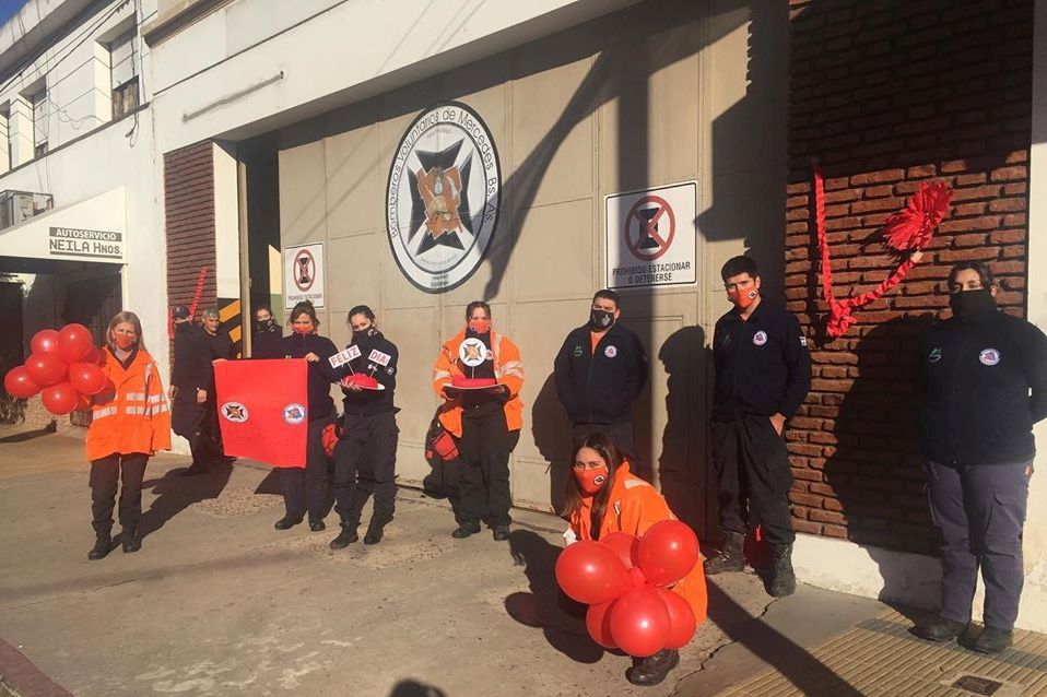 Algunos con imágenes conmemorativas, otros decorando sus casas con globos, moños y cintas de color rojo y amarillo, y a las 20 horas, se escucharon los aplausos dedicado a ellos. Quienes se hicieron presentes, fueron el equipo de Protección Civil Mercedes que llevaron al cuartel, una torta para que los Bomberos celebren su día.