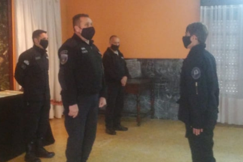 La formación fue de unos pocos agentes, que respetaron las recomendaciones de distanciamiento social y medidas de prevención del COVID-19, acompañaron la asunción en ésta sencilla ceremonia .