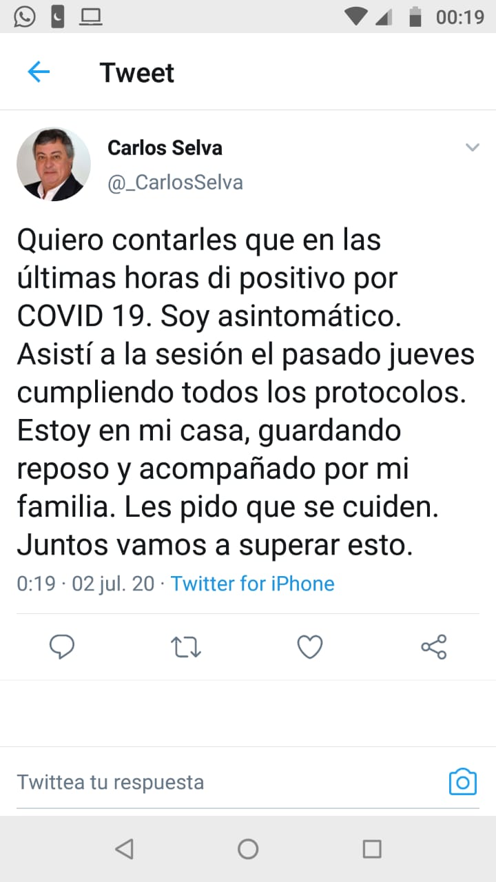El ex Intendente Municipal y actual Diputado Nacional Carlos Selva confirmó que tiene covid-19. A través de los medios nacionales, el dirigente político del justicialismo explicó que obtuvo su resultado positivo este miércoles. Selva es uno de los seis pacientes confirmados esta noche en la comunicación oficial local.