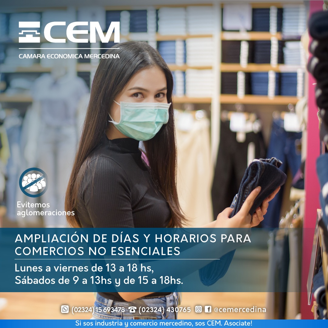 A partir de un proyecto de la Cámara Económica Mercedina, que contó con el acompañamiento del Sindicato de Comercio, el Comité de Crisis autorizó más días y horarios para los comercios locales de rubros considerados no esenciales en el marco de la cuarentena administrada.