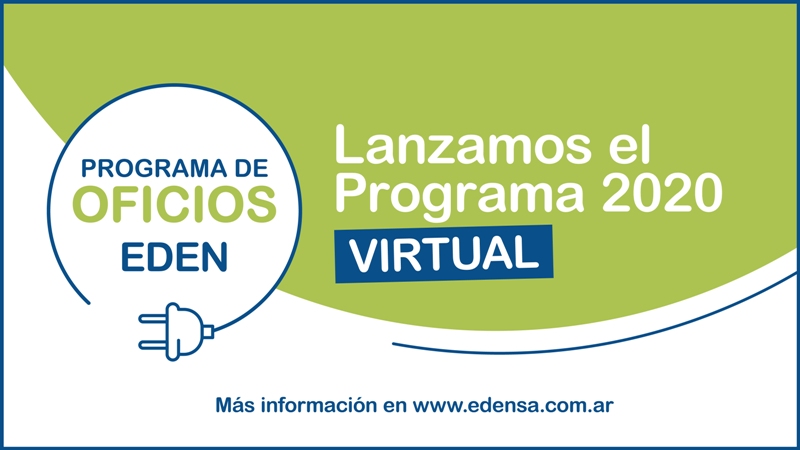 La empresa EDEN lanza el Programa de Oficios 2020 con modalidad virtual. La inscripción está abierta hasta el 23 de agosto. Con el objetivo de continuar con su programa de capacitación gratuita orientado a la comunidad, EDEN lanza la 3° Edición del Programa de Oficios con modalidad virtual en las localidades de Tres Lomas, General Arenales, General Villegas y Mercedes, para que los alumnos puedan cursar desde sus domicilios.
