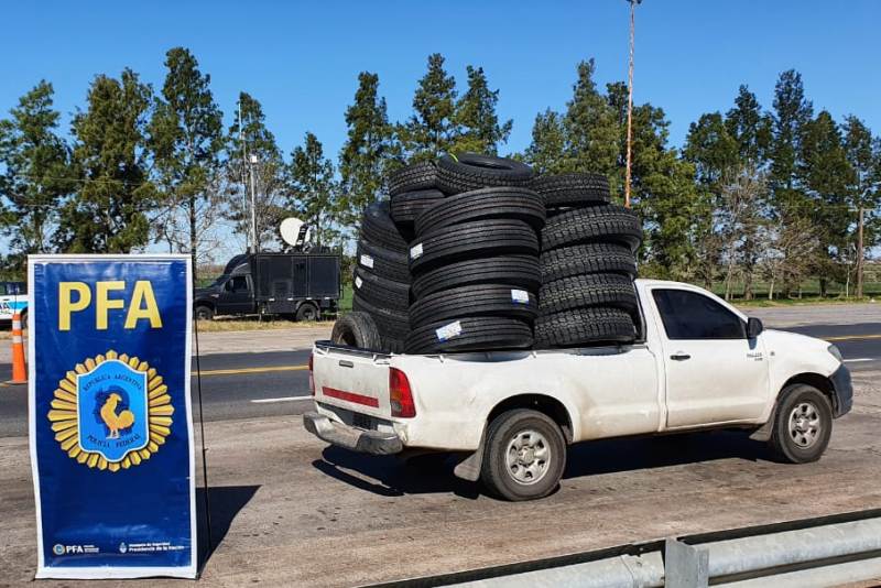 Procedimiento 1. Se detuvo la marcha de un vehículo Toyota modelo Hilux, el cual circulaba sobre la cinta asfáltica de Ruta Nac. N° 5 sentido Mercedes- Chivilcoy, conducido por un masculino mayor de edad, oriundo de la Localidad de Acassuso, quien trasportaba 26 neumáticos de diferentes marcas y rodados, sin el comprobante fiscal de la compra efectuada, mercadería con un valor aproximado de mercado, estimado en más de $ 1.100.000 pesos.