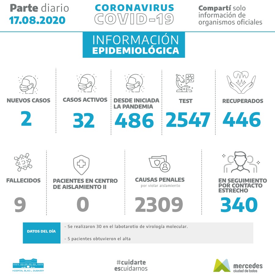 Al día de la fecha tenemos 32 casos activos y 486 desde iniciada la pandemia.
