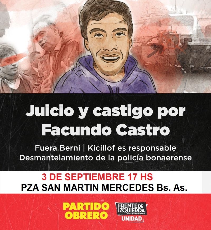 Desde el Partido Obrero de Mercedes convocan para el día jueves 3 de septiembre, 17 horas, con el fin de pedir justicia y el esclarecimiento sobre las causas de muerte de Facundo Astudillo Castro, luego de confirmarse que el cuerpo hallado semanas atrás era de él.