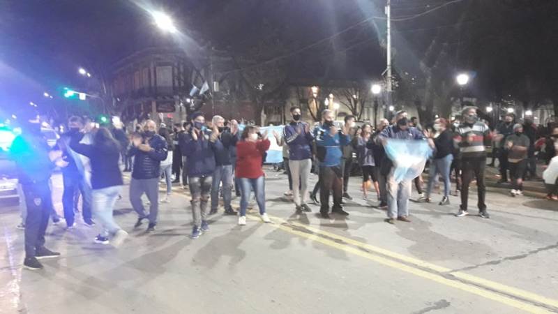 Los agentes locales se reunieron a modo de reclamo en la plaza San Martín, al igual que sucedió en otras localidades de la provincia. Se le exige al gobierno provincial un aumento del sueldo, aumento en las horas extras, el pago a término de del servicio de policía adicional, provisión del uniforme y equipo de trabajo, entre otros reclamos para los agentes bonaerenses.