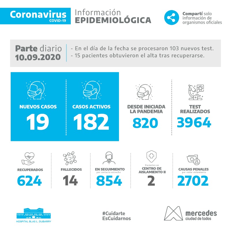 El informe comunicado por el Municipio de Mercedes y el Hospital Blas L. Dubarry dice: