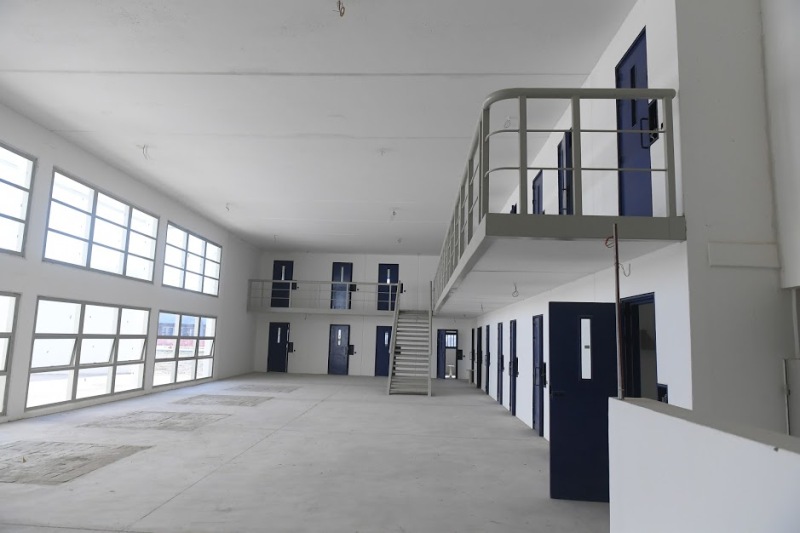 La obra es de grandes dimensiones y conjuga una gran cantidad de espacios, como pabellones, cocinas, talleres, sector educativo, controles, viviendas para personal, administración, entre otras dependencias.