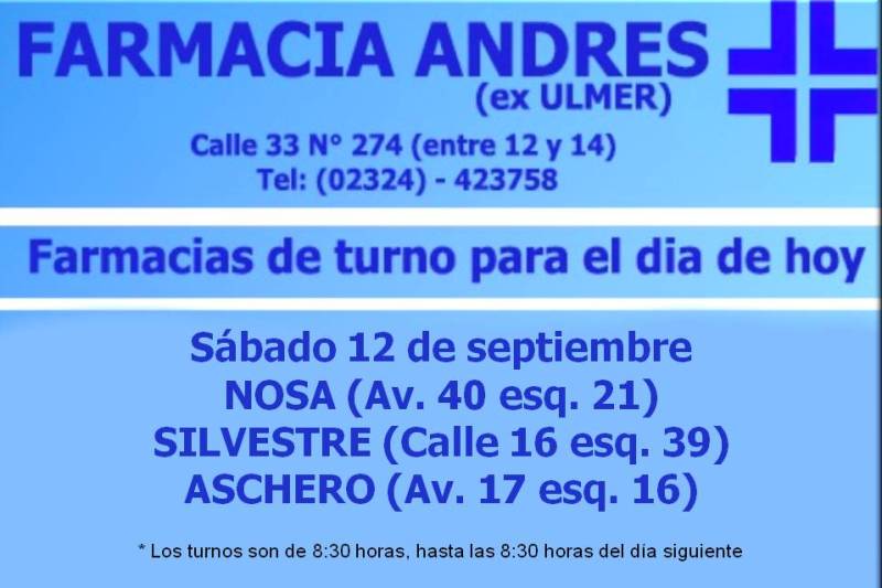 Desde las 8:30 del día de hoy hasta la misma hora de mañana, las farmacias de turno en Mercedes son: Nosa, Silvestre y Aschero.