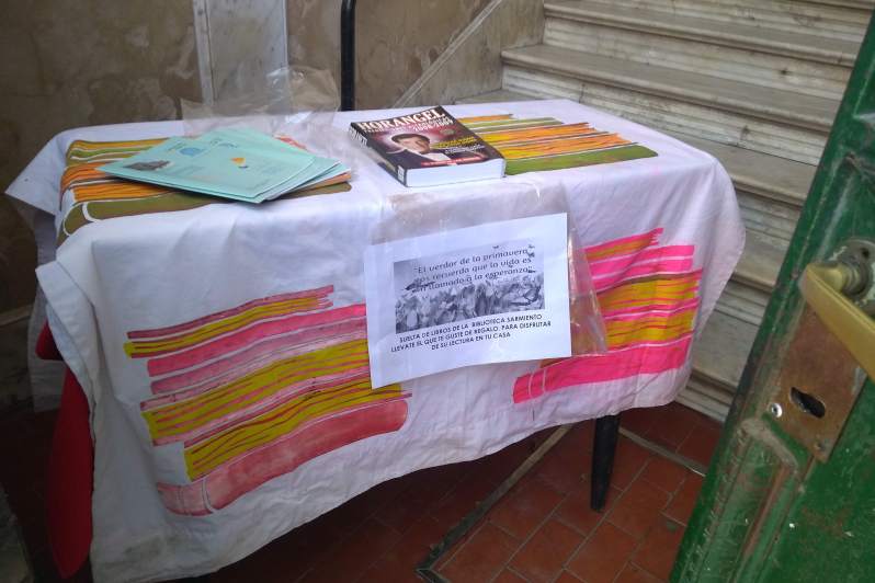 «No pensábamos que íbamos a tener tanta repercusión» dijo Leonor Ocampo presidenta de la Comisión Directiva de la Biblioteca. Mientras, una de las colaboradoras reponía los libros ofertados en la mesa instalada en la puerta de ingreso de la centenaria institución.