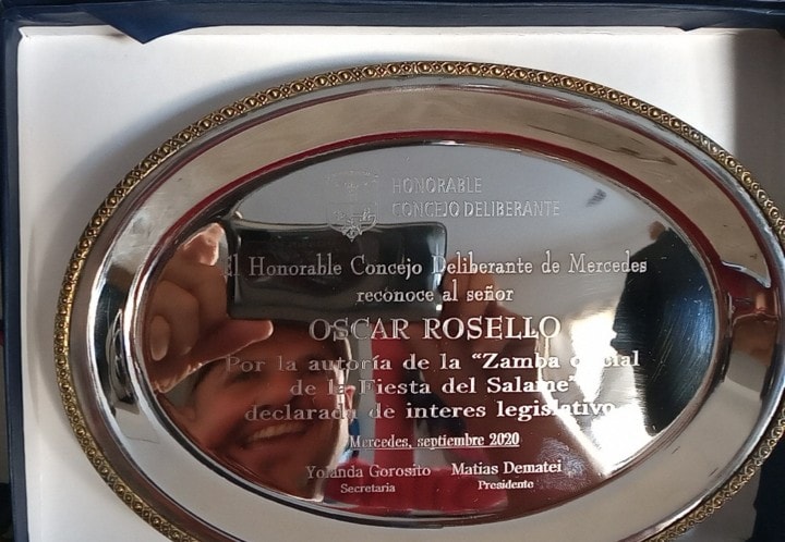 En los primeros minutos de la sesión ordinaria del Concejo Deliberante del lunes por la tarde, los legisladores hicieron efectivo el reconocimiento al música Oscar Rosello por su zamba que se oficializó como canción de la Fiesta Nacional del Salame Quintero. Se trata de la zamba «Mercedes Historia y Sabor».