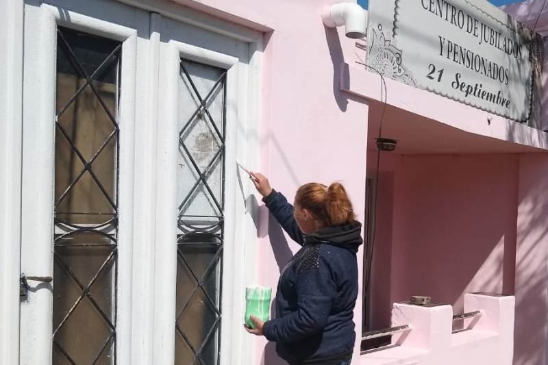Trabajadores y trabajadoras del programa Potenciar Trabajo, que tiene como objetivo refaccionar y mejorar espacios comunitarios, realizaron tareas de pintura en el Centro de Jubilados y Pensionados «21 de Septiembre» que preside Rosa Lossino.
