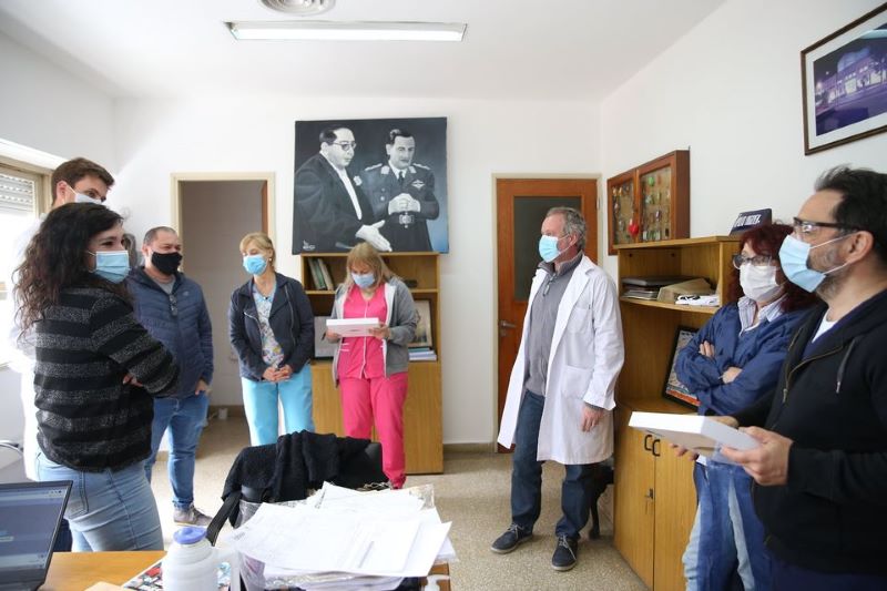 En la mañana de este martes, la Dirección del Dubarry que integran los médicos Pablo Cassiani, Gustavo Robles y Silvina Sukich, recibieron a la Directora de la Región Sanitaria X, Carolina Di Napoli, y al Coordinador Regional de Salud Mental Julio Maldonado, con el fin de recibir las tablets y el protocolo de cuidados que emitió el Ministerio de Salud Bonaerense para mejorar la comunicación entre los pacientes críticos y sus familiares y para las personas en tratamiento psiquiátrico.