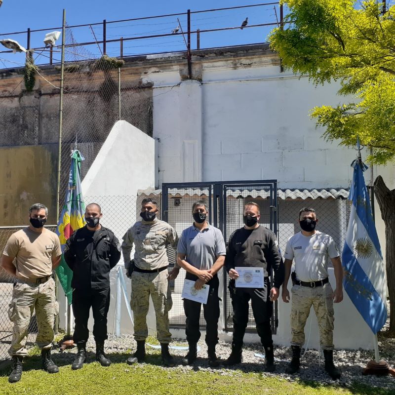 Luego fueron entregados los diplomas a los agentes penitenciarios, Tomás Cersocimo y Pablo Boragno, que son los guías de canes y fueron capacitados por los Instructores de Cinotecnia durante el presente año y estarán a cargo de ellos.